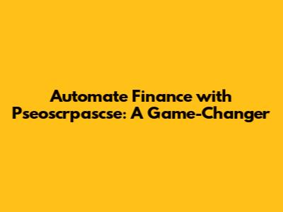 Automate Finance With Pseoscrpascse: A Game-Changer