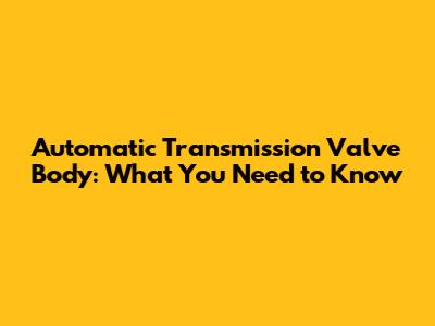 Automatic Transmission Valve Body: What You Need To Know