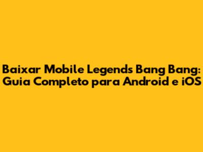 Baixar Mobile Legends: Guia Completo E Passo A Passo