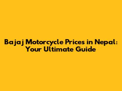 Bajaj Motorcycle Prices In Nepal: A Comprehensive Guide