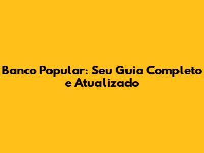 Banco Popular: Seu Guia Completo E Atualizado