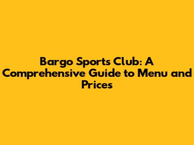 Unveiling the Bargo Sports Club Menu