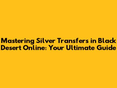 Hey everyone, welcome back to the channel! Today, we're diving deep into a topic that might seem simple at first glance but can actually save you a ton of headaches and time in Black Desert Online: how to transfer silver. Whether you're trying to get some hard-earned coin to your alts, help out a friend, or just organize your vast fortune, knowing the ins and outs of silver transfer is crucial. We're going to break down all the methods, talk about the most efficient ways, and even touch on some common pitfalls to avoid. So grab your snacks, get comfy, and let's get this silver sorted!