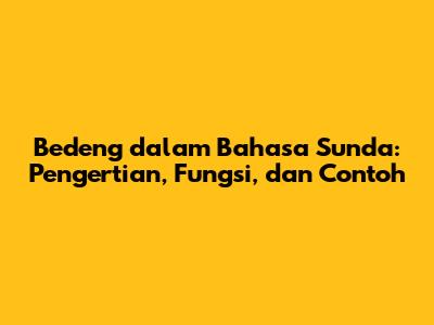 Bedeng Dalam Bahasa Sunda: Pengertian, Fungsi, Dan Contoh