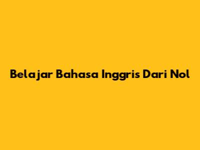 Belajar Bahasa Inggris Dari Nol