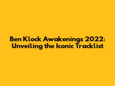 Ben Klock Awakenings 2022: Unveiling The Iconic Tracklist