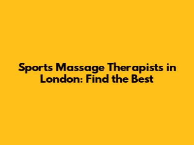 Best Sports Massage Therapists In London