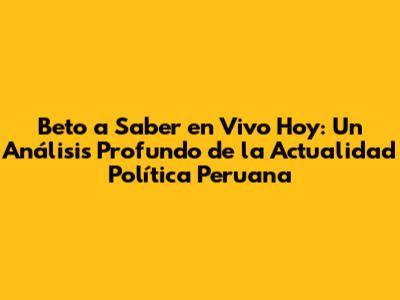 La Influencia de "Beto a Saber" en la Política Peruana – The Influence of "Beto a Saber" on Peruvian Politics