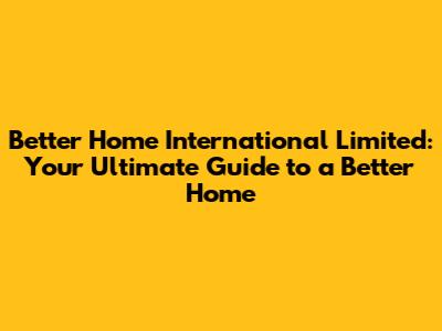 Better Home International: Your Go-To Guide