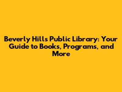 Beverly Hills Public Library: A Guide To Books, Programs, And More