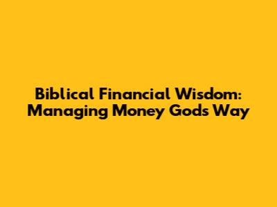 Biblical Financial Wisdom: Managing Money God's Way