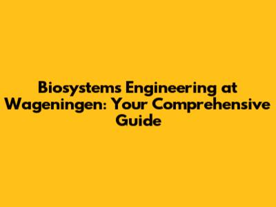 Biosystems Engineering At Wageningen: Your Guide