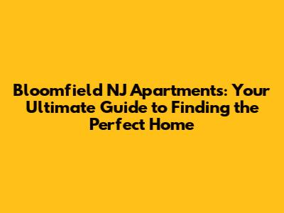 Bloomfield NJ Apartments: Find Your Perfect Home