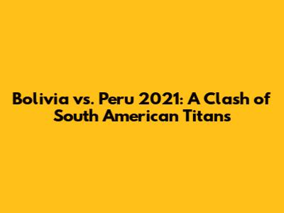 Hey guys! Let's dive into the exciting world of South American football and rewind to a memorable year: Bolivia vs. Peru 2021. This match-up wasn't just any game; it was a clash of titans, a battle for pride, and a showcase of the beautiful game that we all love. We'll break down everything, from the context leading up to the game to the key moments and the lasting impact it had on both nations. So, grab your virtual popcorn, and let's get started!