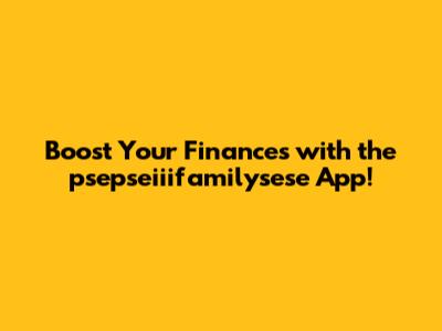 Boost Your Finances With The Psepseiiifamilysese App!