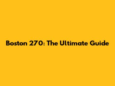 Boston 270: The Ultimate Guide To Understanding It
