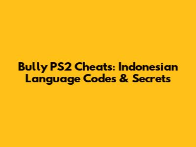 Bully PS2 Cheats: Indonesian Language Codes & Secrets