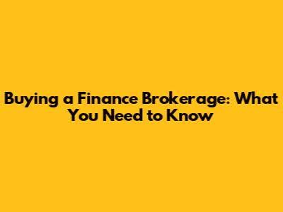 Buying A Finance Brokerage: What You Need To Know