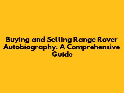 Buying & Selling Range Rover Autobiography: Your Guide
