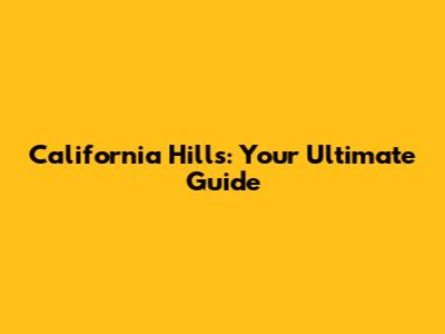 California Hills: Your Ultimate Guide