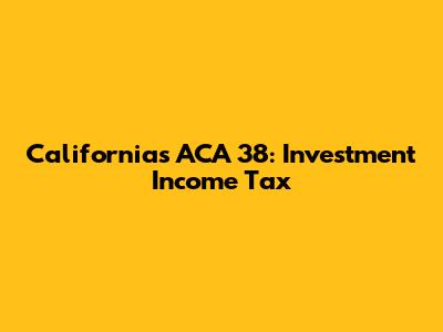 California's ACA 38: Investment Income Tax