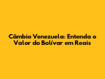 Câmbio Venezuela: Valor Do Bolívar Em Reais (Atualizado)