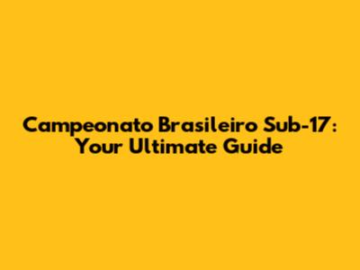 Campeonato Brasileiro Sub-17: Your Ultimate Guide