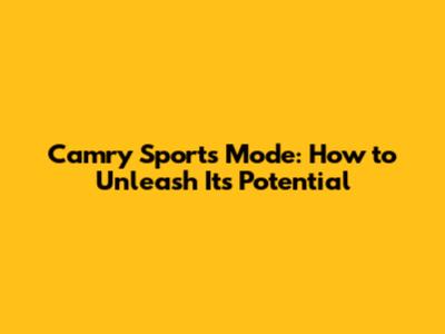 Camry Sports Mode: How To Unleash Its Potential