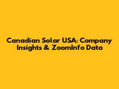 Canadian Solar USA: Company Insights & ZoomInfo Data