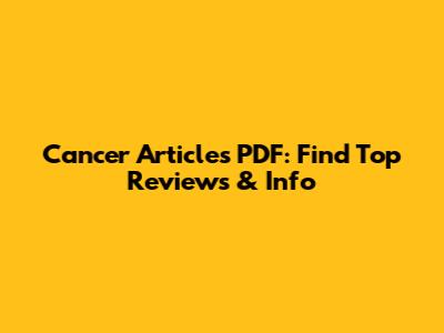 Cancer Articles PDF: Find Top Reviews & Info