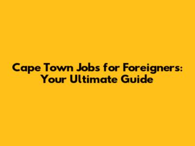Cape Town Jobs For Foreigners: Your Ultimate Guide
