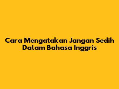 Cara Mengatakan Jangan Sedih Dalam Bahasa Inggris
