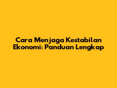 Cara Menjaga Kestabilan Ekonomi Yang Efektif