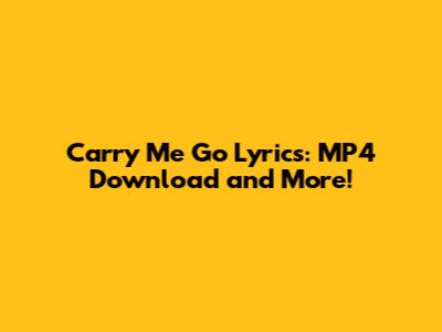 Carry Me Go Lyrics: MP4 Download And More!