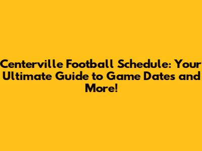 Centerville Football Schedule: Game Dates & More!