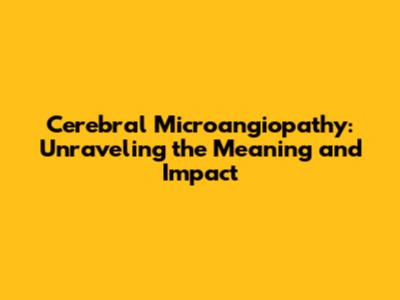 Cerebral Microangiopathy: Unraveling The Meaning And Impact