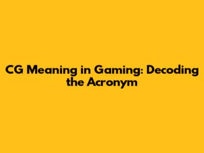 CG Meaning In Gaming: A Detailed Explanation