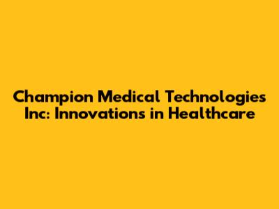 Champion Medical Technologies Inc: Innovations In Healthcare