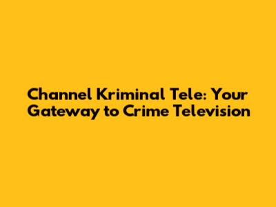 Channel Kriminal Tele: A Deep Dive Into Crime Television