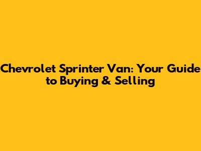 Chevrolet Sprinter Van: Your Guide To Buying & Selling