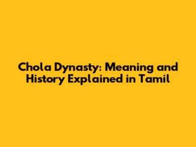 Chola Dynasty: Meaning And History Explained In Tamil