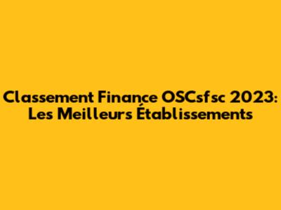 Classement Finance OSCsfsc 2023: Les Meilleurs Établissements
