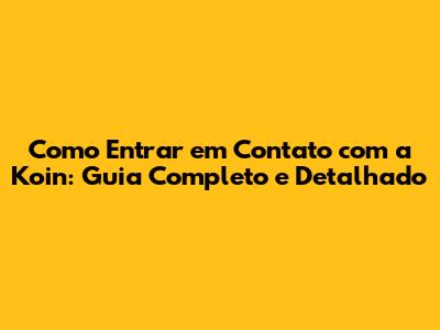 Como Entrar Em Contato Com A Koin: Guia Completo E Detalhado