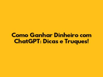 Como Ganhar Dinheiro Com ChatGPT: Dicas E Truques!