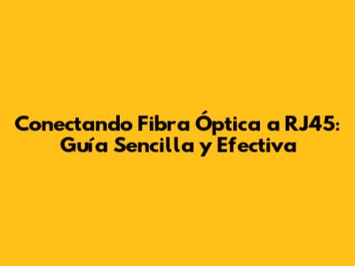 Conectando Fibra Óptica A RJ45: Guía Sencilla Y Efectiva