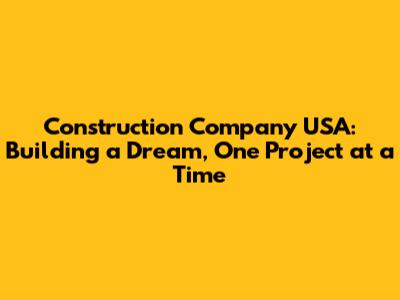 Construction Company USA: Building A Dream, One Project At A Time