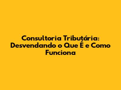 O Que é Consultoria Tributária?