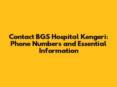 Disclaimer: Please note that the phone numbers and contact details provided are for informational purposes only and may be subject to change. Always verify the most up-to-date information on the BGS Hospital Kengeri's official website.