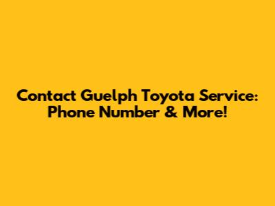 Guelph Toyota Service Phone Number: Your Direct Line