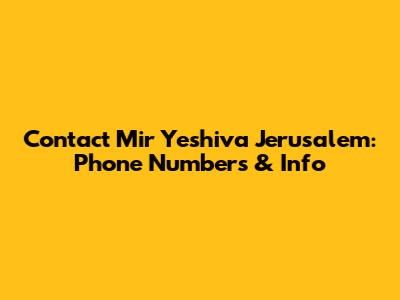 Contact Mir Yeshiva Jerusalem: Phone Numbers & Info